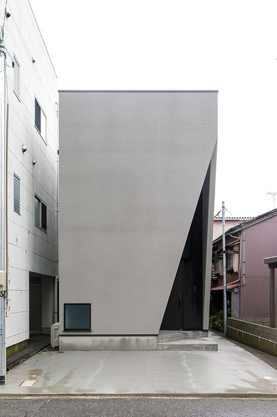 切り込みが入ったような、シンプルながらもインパクトのあるファサードのコンパクトハウス