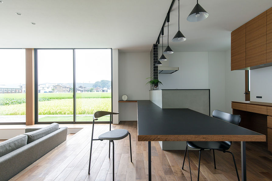 インテリアはウォールナットの床材に合わせてシンプルにまとめています